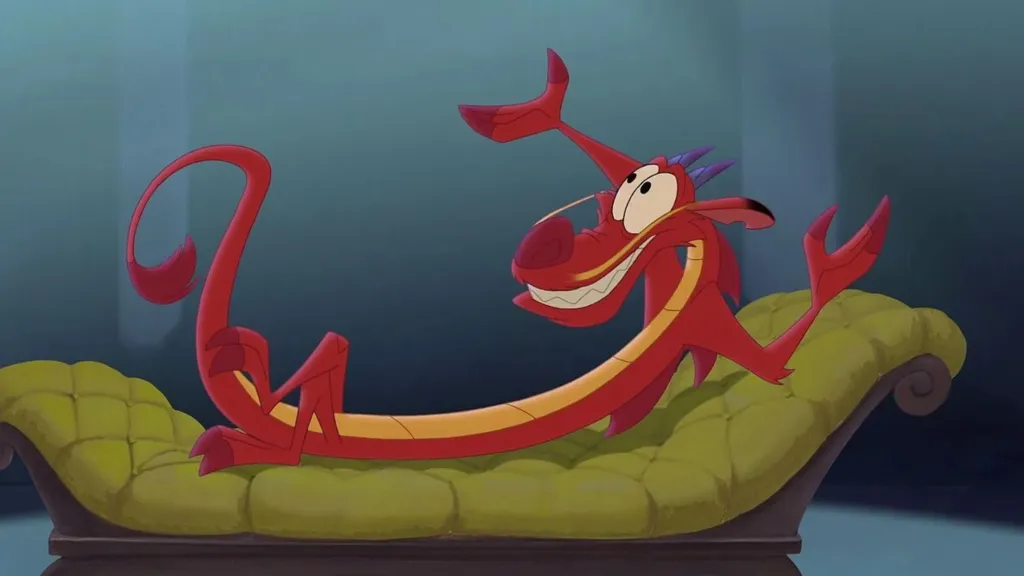 Disney’s Mulan drew from Chinese mythology for its visual language, with Mushu (voiced by Eddie Murphy) depicted as a miniature red dragon whose diminutive stature deliberately inverts every Western expectation the fantasy genre had established. In Chinese tradition, dragons are divine intermediaries and symbols of imperial authority, not fire-breathing destroyers, and Mulan‘s animators used that cultural framework to build a character whose fragile ego functions as a direct contrast to the grand legacy he claims to represent. Mushu stands barely taller than Mulan’s head, carries a cricket for companionship, and spends most of the film navigating the gap between his self-image and his actual capabilities. The resulting character became one of the most beloved sidekicks of Disney’s Renaissance era and a great example of how mythology can be reinterpreted without losing its essential meaning.