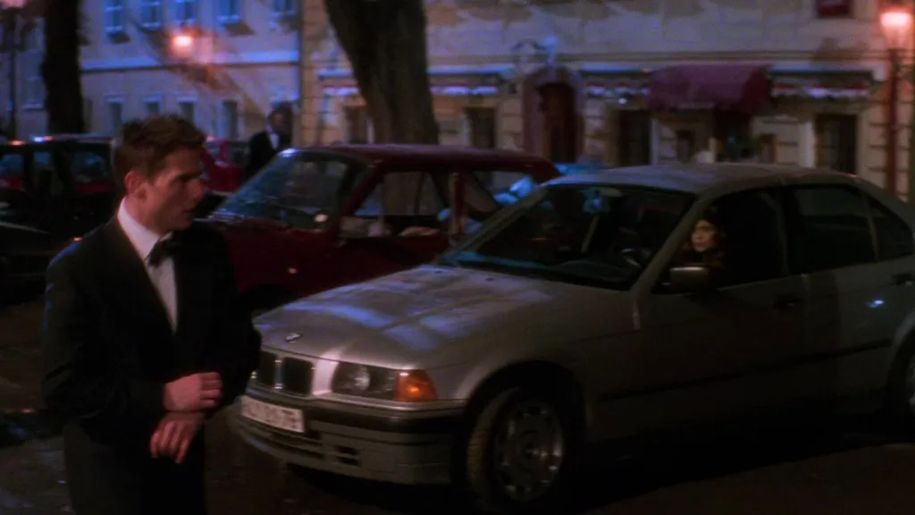 After the mission has been at least somewhat compromised, and Ethan is trying to recover the disc with the NOC list on it, he walks through the streets of Prague to attempt to regain ground on the target holding the sensitive item. As he strolls down the road, though, he passes a silver 1991 BMW 3 that’s parked on the side. Normally, that wouldn’t be that abnormal of a detail until the next shot, where it’s revealed that Claire is actually sitting inside the BMW, and Ethan walks in front of the vehicle again. It’s a fleeting moment (seen below), but Ethan walks past the same car twice in the shot, and you’ll never be able to unsee it once you know it.