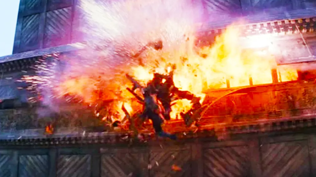 After taking out his goons, Batman turned his attention to the Joker himself. Many actors have played the Joker in live-action, but Nicholson is lauded as one of the best, and this iteration is the only on-screen Joker killed in cold blood by Batman. After Batman thwarted his chemical plans, the Joker tried to escape from their cathedral battle. Batman, however, attached the Joker’s leg to a crumbling gargoyle with a grappling hook, the weight of which sends the Joker plummeting to his death. This was retribution for Bruce Wayne, as the Joker was his parents’ killer in this continuity.