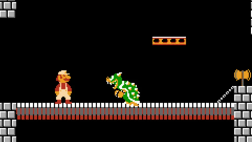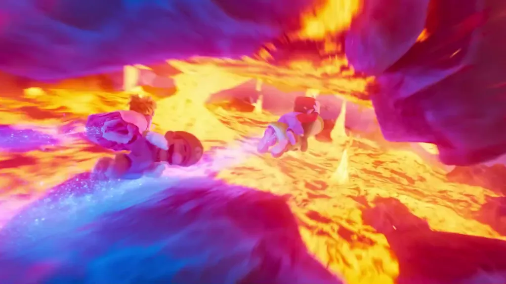 After Mario and Peach successfully beat Bowser Jr’s defense system (itself a clear callback to the incredibly difficult levels you’ll find in Super Mario Maker), The Super Mario Galaxy Movie pays homage to one of the most iconic elements of Mario games: the bridge battle with Bowser. First seen in level 1-4 in the original Super Mario Bros., the film literally has Mario and Peach fight Bowser on a bridge, run past him, and use an axe to chop the bridge down and Bowser into a lava moat.