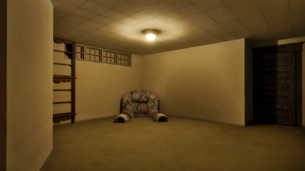 In 2019, a 4Chan thread started up about a fictional abstract liminal space called “The Backrooms.” The realm is an impossibly large space of empty rooms, in which wanderers get trapped by “no-clipping” (phasing) through the walls of physical space. The concept began when a photo of a Wisconsin HobbyTown toy store under renovation was posted in a thread and shared over to a board dedicated to the paranormal. Users were invited to post their own “disquieting” images of freaky-looking empty locations. One user posted a description of the original photo, never knowing they were giving birth to a viral nickname and urban legend: “If you’re not careful and you noclip out of reality in the wrong areas, you’ll end up in the Backrooms, where it’s nothing but the stink of old moist carpet, the madness of mono-yellow, the endless background noise of fluorescent lights at maximum hum-buzz, and approximately six hundred million square miles of randomly segmented empty rooms to be trapped in.”