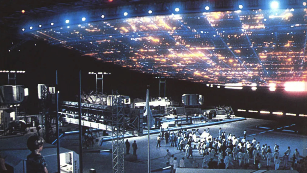 Carl Sagan’s 1985 novel Contact jumped to film in 1997, shortly after Sagan passed away. The resulting Robert Zemeckis film starring Jodie Foster presents evidence of extraterrestrial life being discovered and first contact coming via a returning radio signal. Foster’s Dr. Ellie Arroway and the rest of the scientific community join to build a vehicle from schematics shared by the aliens, in hopes of facilitating an in-person meeting. It’s a positive experience throughout, with the real threats being other humans and religious zealots. The movie doesn’t stick the landing, but it is a fun ride.