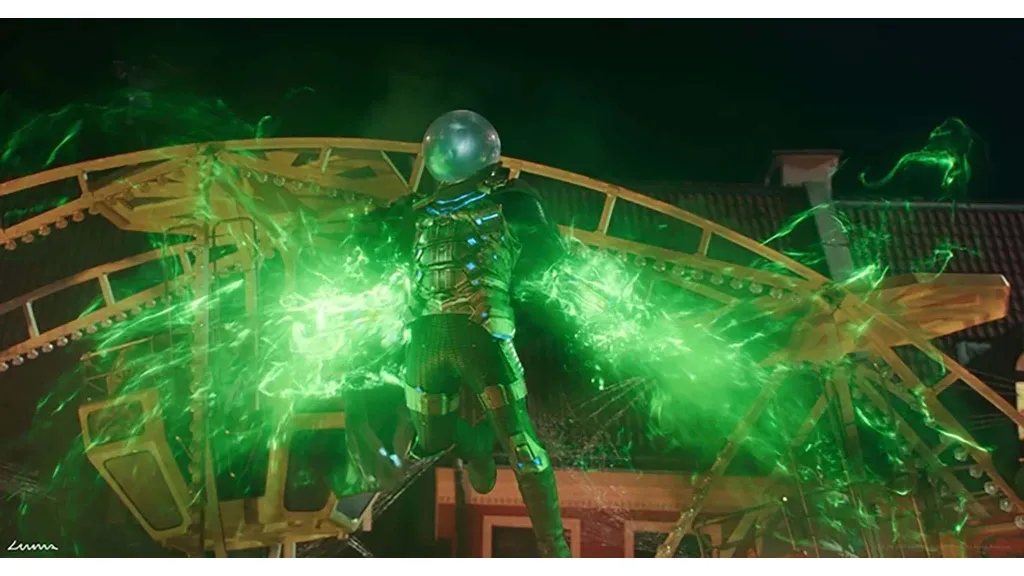 Spider-Man meets with Nick Fury to share what he knows about Quentin Beck and the malevolent scheme he plans to enact as Mysterio, only for the whole meeting to be nothing more than an elaborate illusion created by Mysterio. But that’s just the start – the kaleidoscopic illusions throw off Spider-Man’s senses, constantly blending between fantasy and reality. The entire time, Mysterio taunts Spider-Man with his failures, even creating a projection of a rotting Iron Man – Peter’s old mentor and friend – with which to torment him. Their final moment together culminates in Mysterio ending his illusions, only to trick Spider-Man into getting hit by a train.