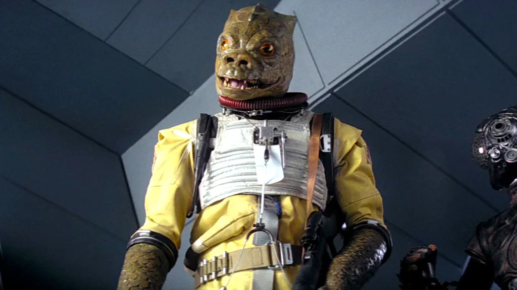 Like Dengar, Bossk lets his appearance do all the talking during his one scene in The Empire Strikes Back. He’s a terrifying lizard creature that strikes fear into the hearts of the Imperials onboard Darth Vader’s Star Destroyer, which says a lot, given how much nasty stuff they get up to.