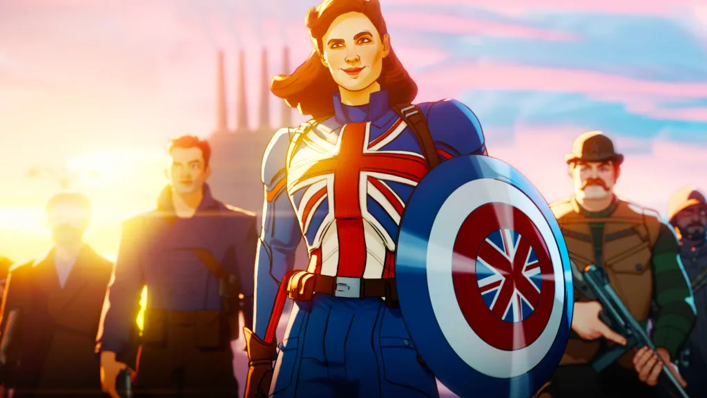 The first alternate reality introduced in What If…? saw Peggy Carter become a super-soldier instead of Steve Rogers (Josh Keaton), who became the HYDRA Stomper. As Captain Carter, Peggy defeated the Red Skull and the Champion of HYDRA before coming through a portal to the modern era. There, she became the first leader of an Avengers team comprising herself, Black Widow, Iron Man, Thor, Hawkeye, and the Wasp. She then battled a Red Room-controlled HYDRA Stomper before embarking on a journey across various other realities, eventually sacrificing her life to save the Watcher and her allies.