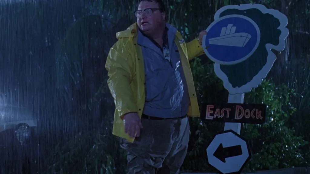 The storm quickly threw the best-laid plans and coding to the wind, and that was a huge problem. His need to rush through the security process had him making mistakes left and right, and we’re not just talking about the crash. Nedry legitimately thought it was a good idea to jump into a bright raincoat and take a company-branded car. Had anybody caught on to what he was doing, this would have made it even easier to track him down.