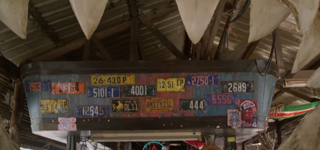 Van Dijk’s Bar & Grill is littered with references to 1975’s Jaws, production designer James Clyne points out in a new behind-the-scenes featurette. “What I love about set decorating is you’ll get these little stories,” Clyne says. Van Dijk’s, built from the remains of a derelict outdoor café in the middle of a fishing village in Bah Gun, Thailand, houses an eight-foot Mosasaurus jaw and a section of the Orca, the fishing boat captained by Robert Shaw’s Quint in Jaws.