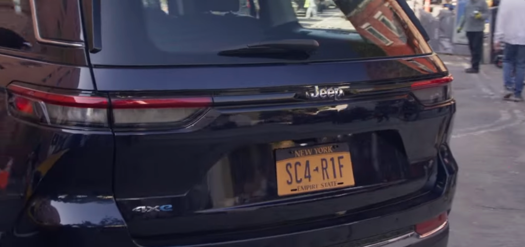 Not only is a close up on Krebbs’ side mirror a clever nod to the “must go faster” T.rex chase from the original Jurassic Park — in which the phrase “objects in mirror are closer than they appear” can be read — but his vehicle’s license plate reads “SC4R1F.” That’s a reference to the tropical planet Scarif introduced in 2015’s Rogue One: A Star Wars Story, which was directed by Edwards. (Also in the scene: a Crichton Middle School bus, which is a homage to Jurassic Park author Michael Crichton.)