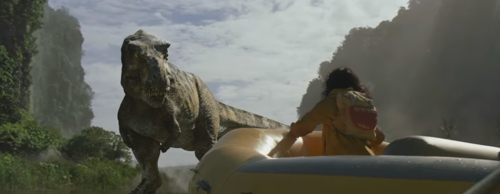 Since “Rexy” — the original T.rex who terrorized Alan Grant (Sam Neill), Lex (Ariana Richards), and Tim (Joseph Mazzello) in Jurassic Park before stomping into all three Jurassic World movies — retired to a sanctuary in 2022’s Dominion, the filmmakers redesigned the iconic dinosaur to match its grounds on Ile Saint-Hubert. ILM dubbed the grey and brown-skinned T.rex “Ember.”