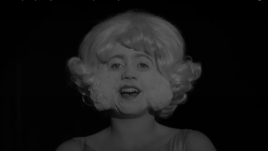 Nikki Grace is an actress, and while she’s rehearsing a scene with her co-star Devon Berk in a soundstage, they along with the director spot someone spying on them from the set. Devon goes to investigate but finds no one there. However, later in the film, Nikki begins losing her grasp on reality which is merging with various bizarre hallucinations. In one of those visions, she wanders onto a movie set – and sees herself rehearsing with Devon and the director, realizing that she was the one who caused the disturbance in the first place.
