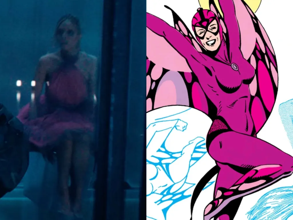 Next to Superman’s cell is a woman wearing a distinctive black and pink dress. This could be Susan Linden, a lesser-known character with ties to Lex Luthor in the comics who first appeared in 1973’s Adventure Comics #428. The woman known as Black Orchid grew up in the suburbs of Metropolis and married Carl Thorne, a career criminal and arms trafficker for the industrialist Lex Luthor.