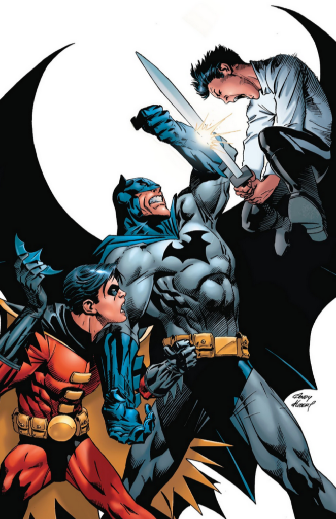 By the time of “Batman & Son,” Tim Drake has succeeded Dick Grayson (now Nightwing) as Robin and clashes with Damian, the son of Bruce and Talia al Ghul. Spanning Batman #655-658, the four-issue storyline also features appearances by the Joker and an army of ninja Man-Bats.