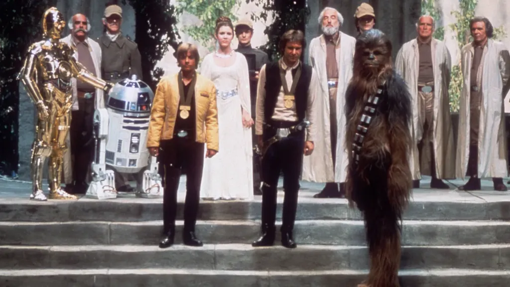 The ending of Star Wars, as it was in 1977, is utterly triumphant. Yes, a sequel was likely, and no, the fight against the Empire wasn’t over (and is it ever?), but the image of our two entirely unlikely heroes being lauded by the Rebel Alliance with medals, applause, and a roar from Chewbacca was truly spirit-lifting. With the context we have now, thanks to Rogue One and Andor, it’s a more bittersweet ending, but it’s also what Cassian Andor and Jyn Erso spied and fought for. From Han Solo flying in with the Falcon to help Luke at the last minute of the trench run, to Luke actually making the shot that destroys the Death Star, to our heroes joyfully assembling in what appears to be an ancient temple, it was a feel-good ending, and even an entire franchise later, it still is.