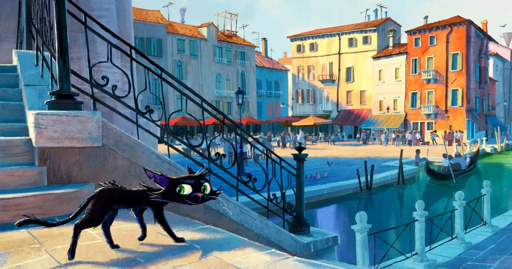 Gatto is set in Venice, Italy, and follows a black cat named Nero. Nero has started to wonder if he’s lived his 9 lives to the fullest, though he has to figure that out while also trying to stay ahead of a mob boss whom he owes something to. In the midst of all that chaos, Nero meets a street artist named Maya, and the unexpected meeting might just be the key to living his best life.