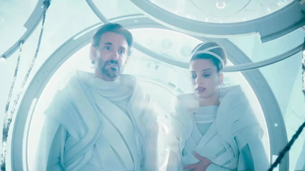 Jor-El (Bradley Cooper) and Lara’s (Angela Sarafyan) message to Superman is quite different in Gunn’s Superman from the message seen in the Christopher Reeve movies or Man of Steel. In those projects, Jor-El was a kind mentor. In Superman, they’re essentially telling their son to rule Earth with a harem.