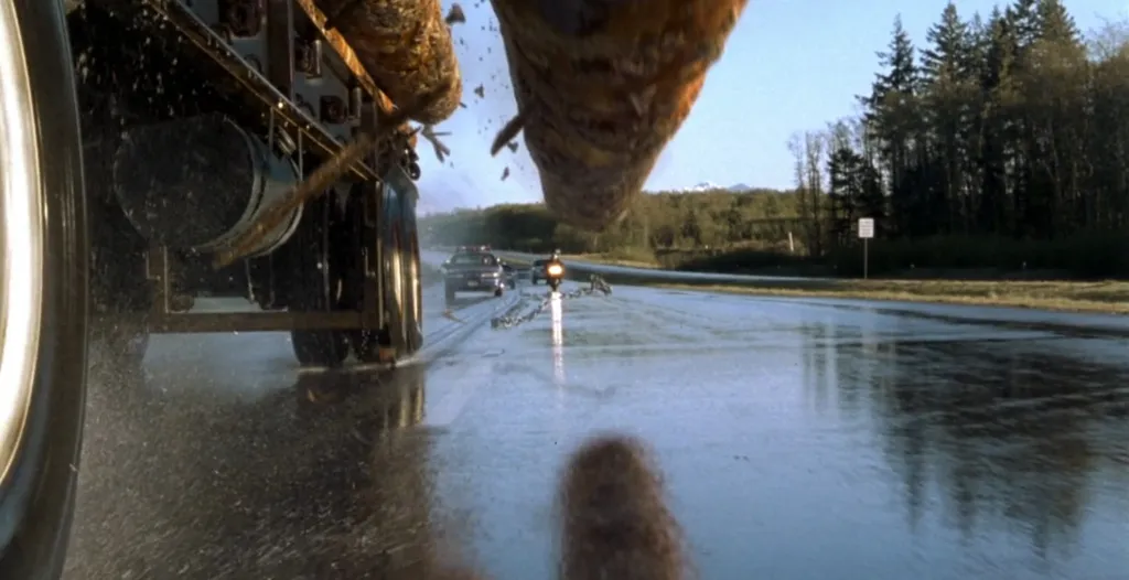 Where the series really gets you is deaths that your subconscious mind can correlate to things you see every day, and when it comes to trucks, we get several of those. The pattern starts where you probably suspect โ the freeway pileup in Final Destination 2. IN the sequel, the crash really gets bad when a logging truck loses its cargo and fresh timber is suddenly careering through rush hour traffic. It smashes through windshields, topples cars over, and impales some unlucky victims.