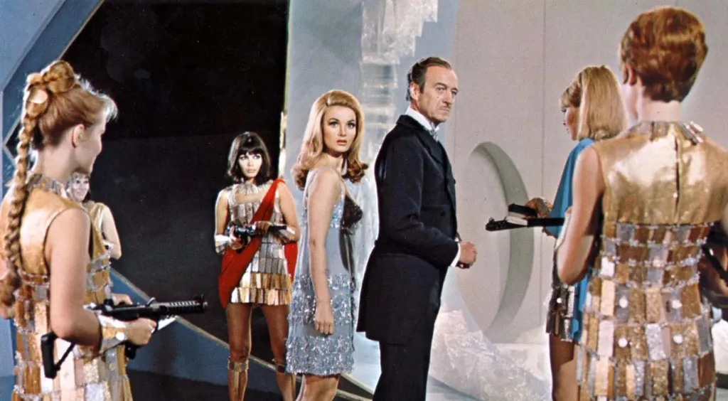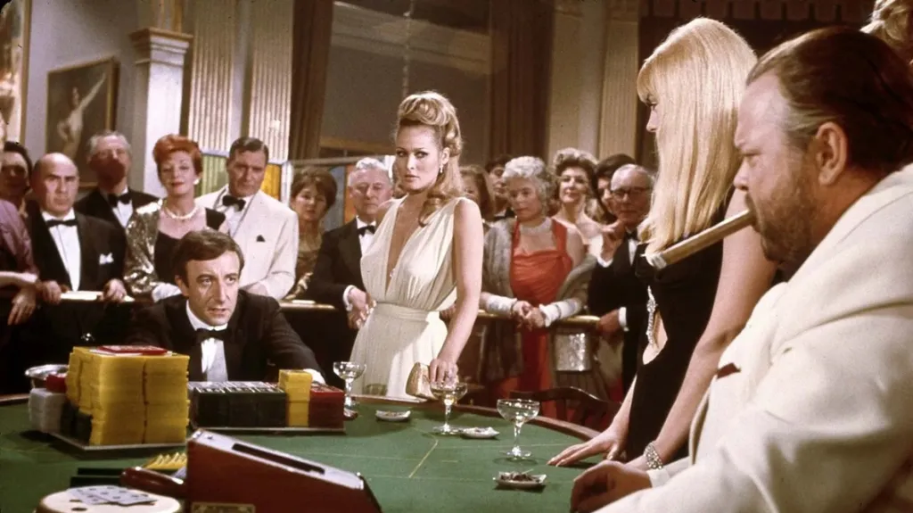 Casino Royale was molded after other mid-20th-century movies with expansive casts like Around the World in 80 Days and It’s a Mad, Mad, Mad, Mad World. This inspired a conceit that especially differentiates Casino Royale from other Bond movies: no one actor portrays 007 in this feature. Instead, a slew of different performers take on the James Bond moniker. Sellers, Ursula Andress, Joanna Pettet, Terrence Cooper, and others all appeared as Bond while Allen played “Jimmy Bond.” This bizarre choice epitomized both the “anything goes” comedic lunacy of Casino Royale and this title’s status as an anomaly in the larger Bond franchise.