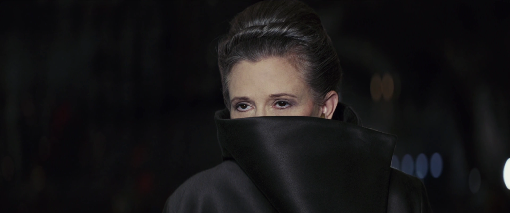 It felt like she was settling into elder stateswoman mode here, as well as acknowledging that she’d lost a lot of people by this point; this outfit does feel like mourning garb for the resilient older space woman. The late and always missed Carrie Fisher wears it well; considering her appearances in The Rise of Skywalker were mostly cobbled together from Force Awakens outtakes, this is the last costume she got to wear as the always stylish rebel princess she created all the way back in 1977.