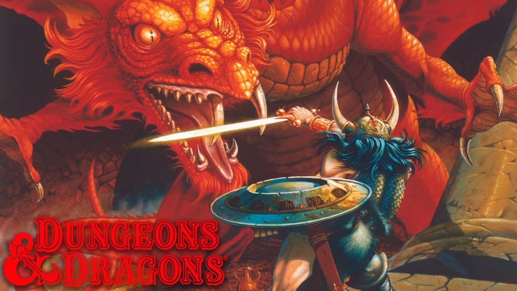 Art from the Dungeons and Dragons player manual with the franchise logo.