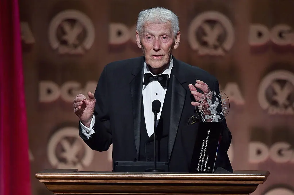 CENTURY CITY, CA – FEBRUARY 07: Director Robert Butler accepts the Lifetime Achievement in Television Direction Award onstage at the 67th Annual Directors Guild Of America Awards at the Hyatt Regency Century Plaza on February 7, 2015 in Century City, California. (Photo by Alberto E. Rodriguez/Getty Images for DGA)