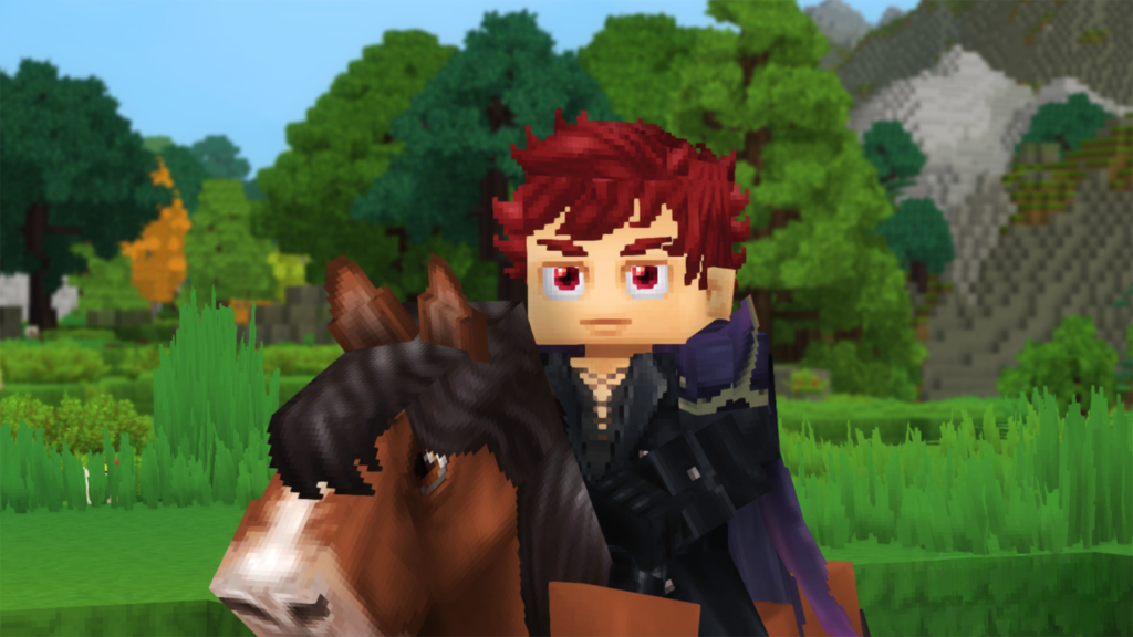 A screenshot from Hytale, showing a player character riding a horse.
