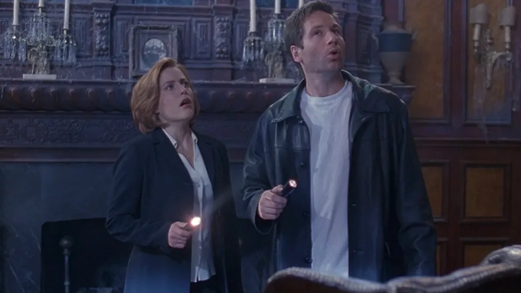 The episode hooks viewers from the start as Mulder explains that a couple who previously lived in the mansion agreed to die by suicide together on Christmas in 1917 and now return every Christmas Eve to haunt those who cross their path. Once inside the decayed residence, the door shuts behind Mulder and Scully, triggering strange noises and mysterious visions. While separated, the agents find themselves face-to-face with the ghosts of the couple, Maurice (Asner) and Lyda (Tomlin). They convince Scully that Mulder will betray her and carry out a suicide pact like they did. In an intense back-and-forth, Scully and Mulder shoot each other, though it’s eventually revealed that the entire situation was an illusion created by Lyda. The agents then walk out of the house shaken, yet unscathed, and later exchange Christmas gifts.