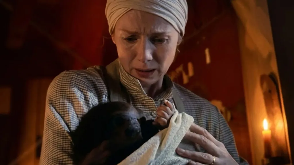 In “Abies Fraseri,” Outlander gives a turning point that completely changes how the show should be read moving forward. The episode revolves around familiar tensions like conflicts, loss, and increasingly difficult choices. And in the middle of all that, Claire faces a new challenge: a woman arrives at the Fraser home in labor with twins, already in a fragile condition. Claire steps in as a doctor and successfully delivers the first baby without major issues. But the second baby is born not breathing at all. Claire tries to revive the child using medical techniques, including stimulation and assisted breathing. It doesn’t work. So, at that point, it’s clear that, within medical logic, there’s nothing else she can do.