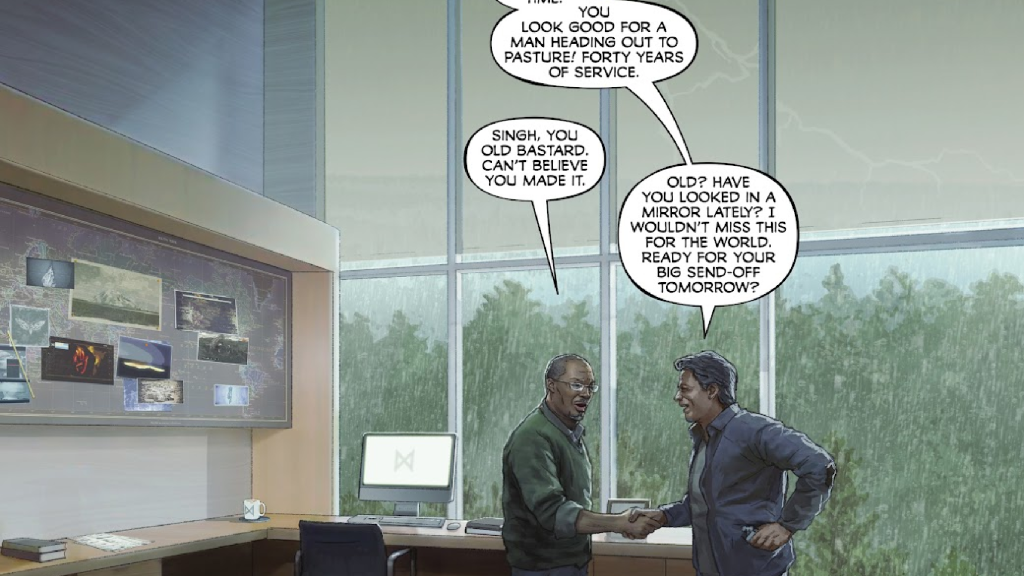 The final file is dated 8/2/2016, and it originates from Outpost 32 in Antarctica. This, of course, is the outpost that is monitoring the sleeping King Ghidorah himself; Apex will eventually manage to use one of Ghidorah’s three heads for their Mechagodzilla project. All this, incredibly, is set up in a brief moment in Monarch Season 2.