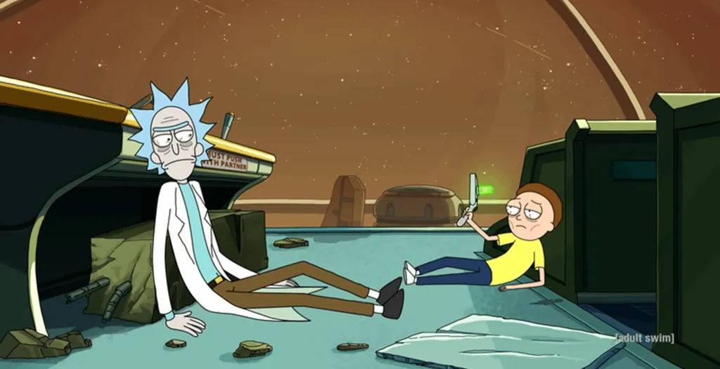 The opening of Season 6 finds Rick and Morty stranded in space on what remains of the Citadel of Ricks, which was destroyed when Evil Morty escaped from the Central Finite Curve. The first scene is a send-up of Avengers: Endgame, which starts with a Tony Stark (Robert Downey Jr.) and Nebula (Karen Gillan) stranded on a drifting spaceship. Rick parodies Tony’s farewell message recorded for Pepper, and they’re eventually rescued by Space Beth who’s not a bad stand-in for the MCU’s Captain Marvel (Brie Larson).