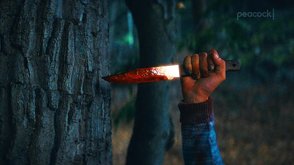 To that end, the first looks revealed by Peacock for Crystal Lake harken back to imagery from the first Friday the 13th film in ways that shouldn’t surprise longtime fans. One image features the titular crystal lake with its trademark fog floating above it, the second shows a pair of dead camp counselors that harkens back to the opening scene of the original Friday the 13th movie, and the third features a hand holding a knife, which looks quite reminiscent of Pamela from the first film, too.