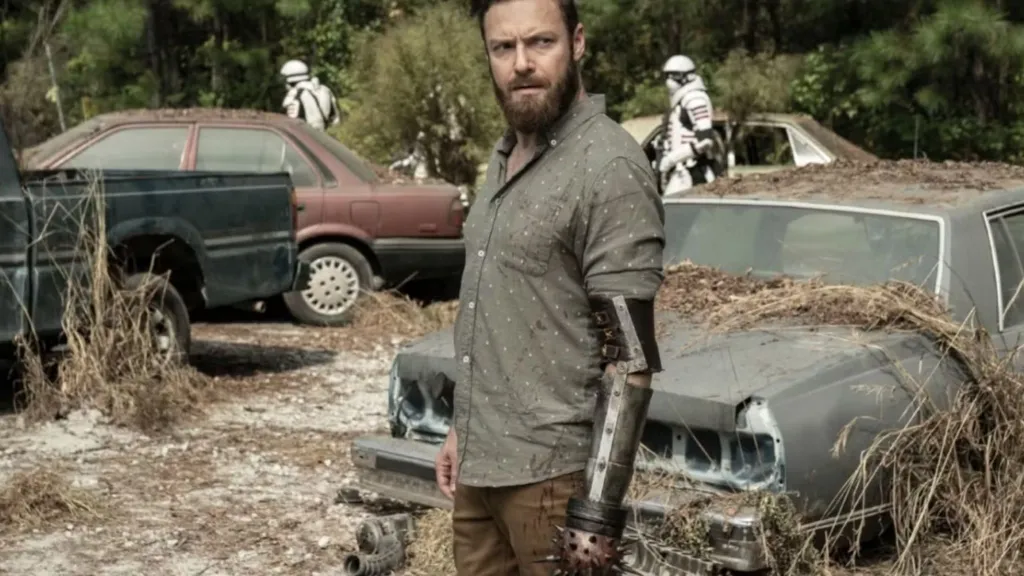 Another character who loses their arm on The Walking Dead is Merle Dixon, Daryl’s brother, who Rick Grimes leaves on a roof in Atlanta. Merle finds a new home in Woodbury and gets a prosthetic arm with a knife blade on the end. He uses it time and time again to take out walkers and cause trouble for Rick’s group.