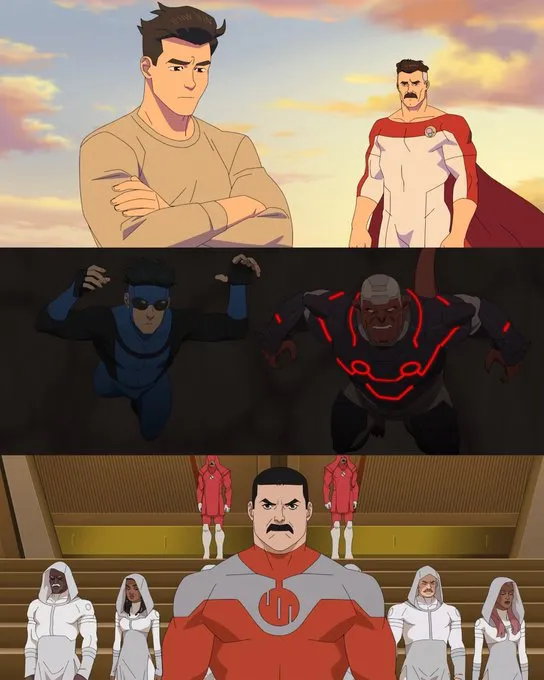 Invincible has shared several new images from the upcoming fourth season, which won’t just focus on Damien Darkblood but also on various new heroes and villains taking center stage. On top of Clancy Brown returning to this role, actors Matthew Rhys, Lee Pace, and Danai Gurira will take on the roles of the villains Dinosaurus, Thragg, and Universa, respectively. Most of the original cast will be returning to their roles as well, though voice actor Aaron Paul has stated that he won’t be returning to the role of Powerplex. You can check out the preview images below that highlight new and old heroes and villains alike.