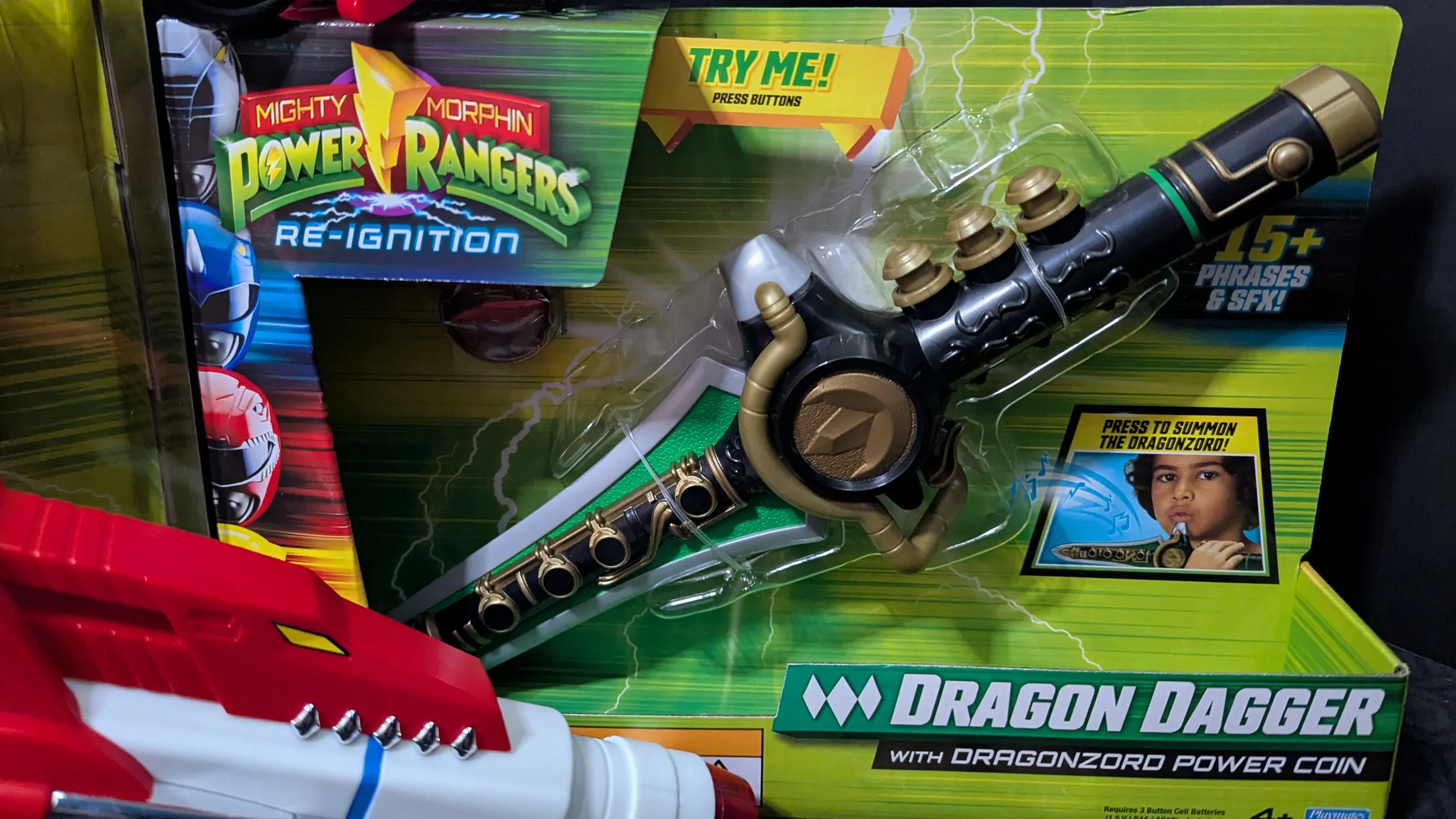 For the Green Ranger fan in your life, you’ll want to add the Dragon Dagger to your collection, and this one has some cool features. Not only do you get over 15 sound effects and phrases, but you also get the Dragonzord Power Coin to use in the Power Morpher. Now, Hasbro’s Dragon Dagger is a personal favorite, and this one scales things down a bit, as it doesn’t feature light-up effects or the whole remix function to the music.