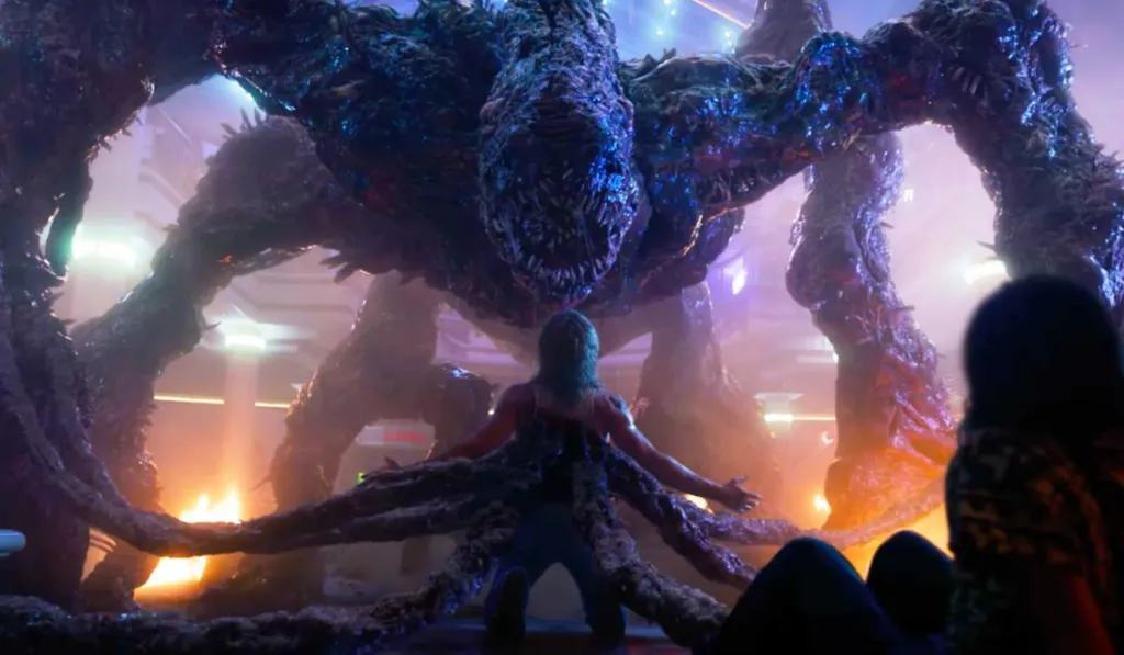 However, the whole scene is brilliant from the moment she finds her strength and escapes, running in a chilling scene to the portal where she sees her friends shouting to get her attention. Set to the sound of “Running Up That Hill (A Deal With God),” this is one of the most electrifying moments and one that almost brings the audience to the brink of collapse, hoping she can save herself. Putting everything in slow motion and with flashbacks of her life with her friends was also a nice touch.