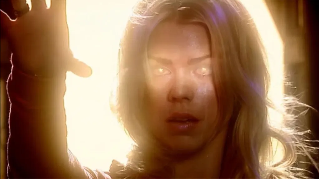 The ‘Bad Wolf’ entity was born when Rose Tyler looked into the heart of the TARDIS and absorbed the Time Vortex itself, the knowledge and power of the Universe temporarily transforming her into a near-omnipotent being. Unlike some other entries, The Bad Wolf version of Rose does earn her place on the list due to raw power. Despite only having a relatively brief appearance at the end of “The Parting of the Ways,” in mere moments, the Bad Wolf Rose disintegrated an entire Dalek fleet, resurrected Jack Harkness, granting him immortality, and rewrote history to scatter the words Bad Wolf across time and space in order to ensure Rose got the message, leading to her own creation.