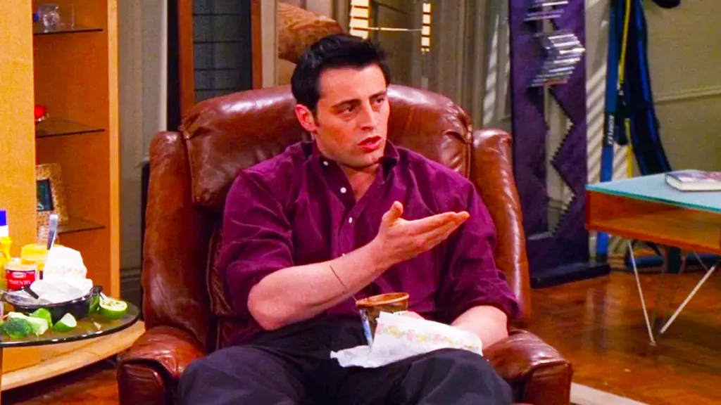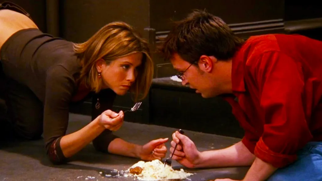 Who’s to blame when Joey’s fridge breaks, Chandler, Rachel, or Ross? Anybody but Joey, or old age. Joey gorges himself on everything in his fridge when it breaks in Friends season six, episode 19, “The One with Joey’s Fridge,” while Chandler, Monica, and Phoebe help Rachel find a date for a charity ball, and Ross struggles to accept Elizabeth (Alexandra Holden), his student girlfriend, going on Spring Break. This is kind of a non-episode where not much actually happens to progress the overall narrative of the series, but it’s still incredibly funny and cringe-worthy in the best way.