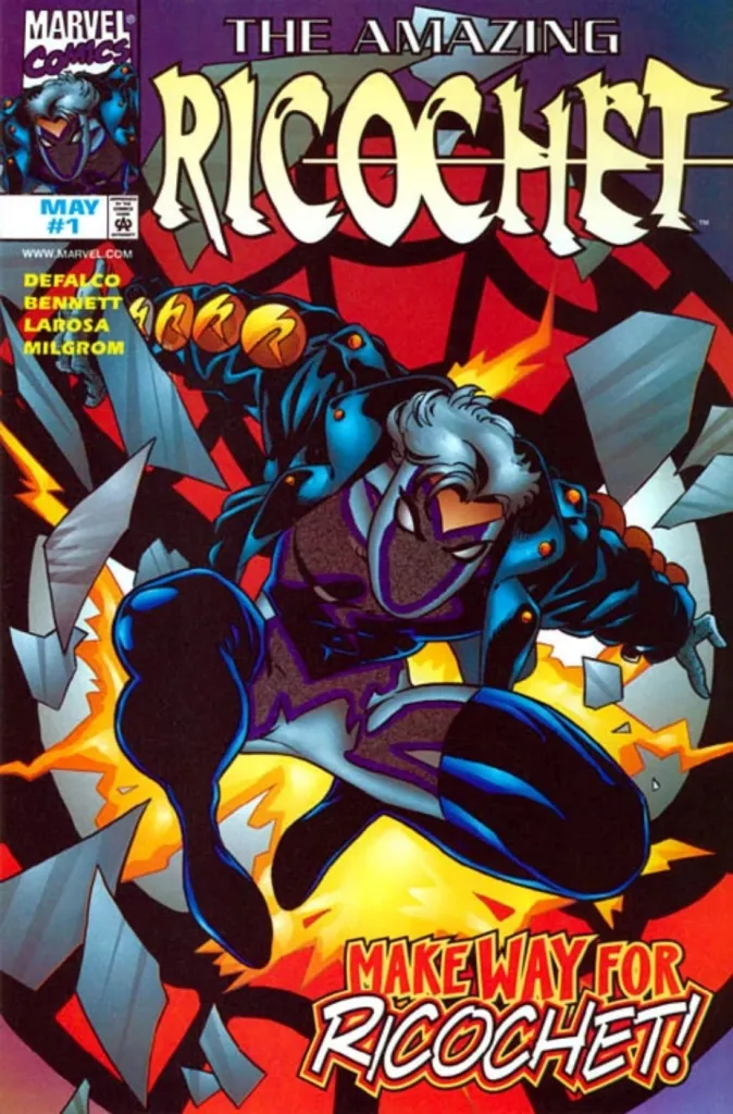 This cover identity that protects Osborn’s 15-year-old pupil is a reference to Identity Crisis, a ’90s comic book storyline where Spider-Man was framed for murder and forced to adopt a series of alternate superhero personas while he was hounded by bounty hunters and the law. (The culprit: Norman Osborn, a.k.a. Spider-Man’s nemesis the Green Goblin.) One of Peter’s faux-sonas was of Ricochet, a mantle that eventually passed to Johnny Gallo, a Brooklyn-bred mutant with the mutant ability of hyperactive agility.