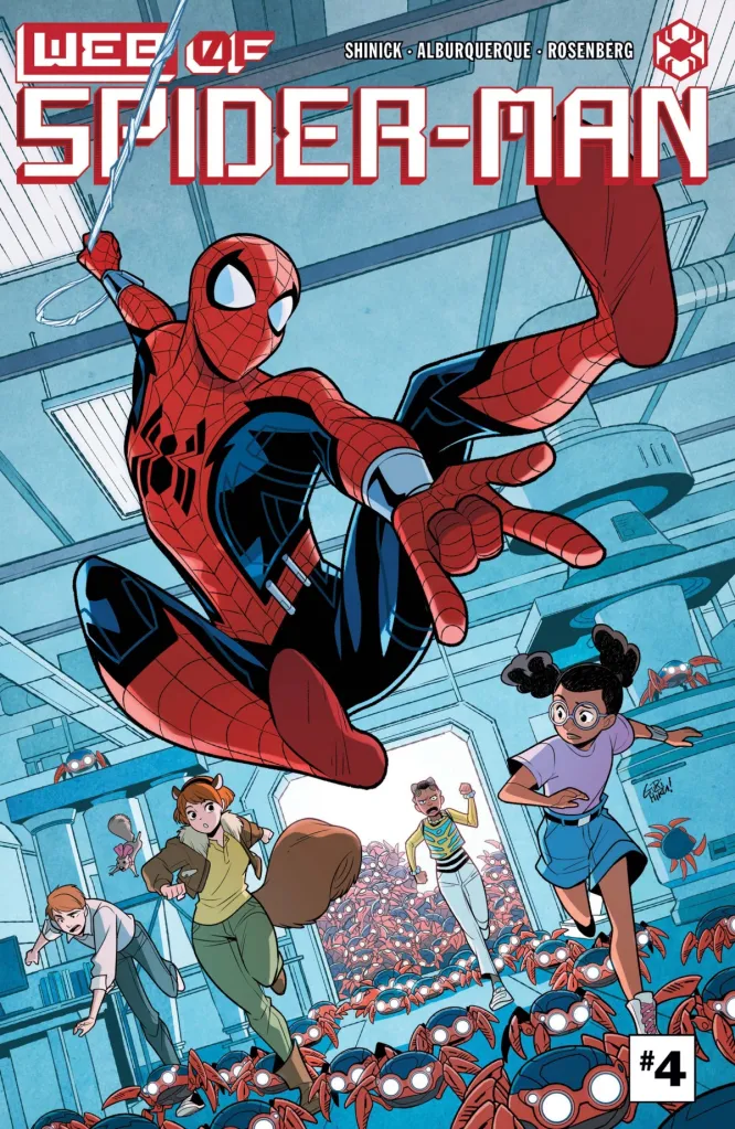 No longer trusting Oscorp or Osborn, Peter severed ties as an Oscorp-sponsored Spider-Man. Now bankrolled by his hands-off friend Harry Osborn (Zeno Robinson), Team Spidey thwipped up W.E.B.: the Worldwide Engineering Brigade.